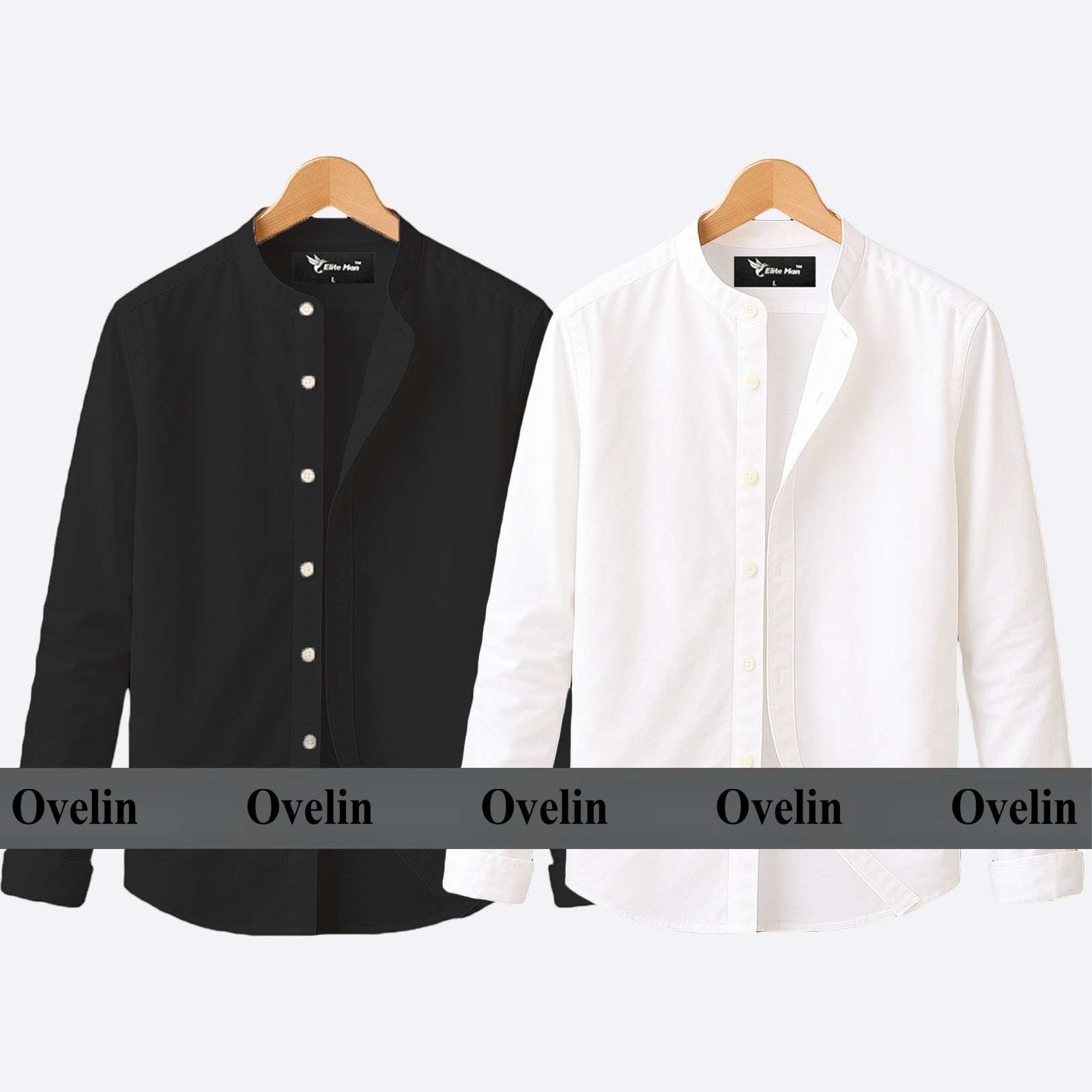 2 pcs Combo Ban Colar Full Sleeve Shirt - Black & White. - 1220