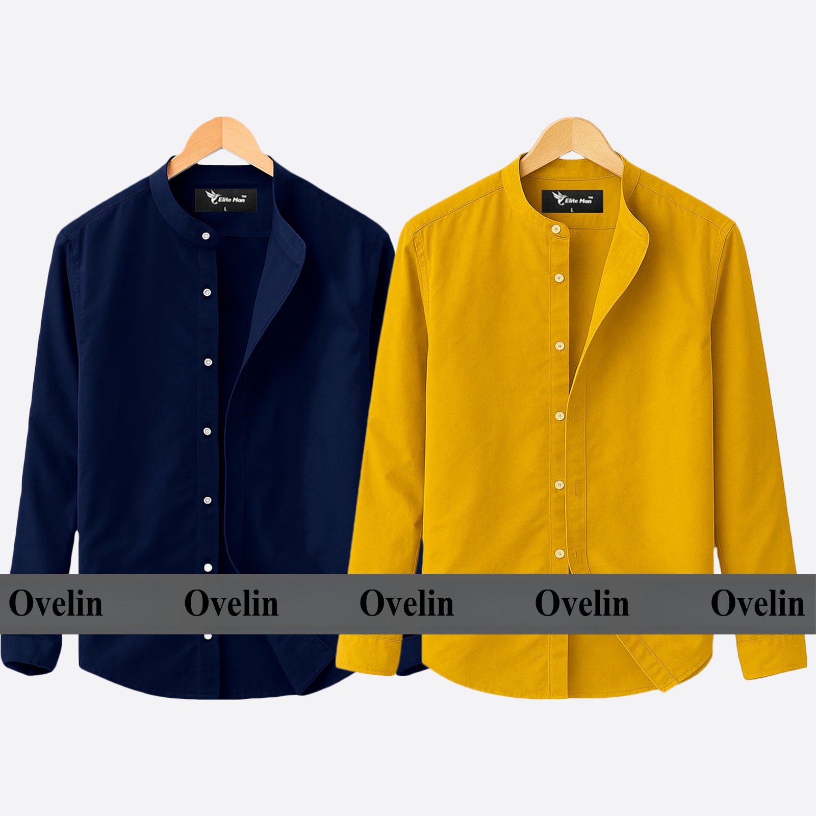 2 pcs Combo Ban Colar Full Sleeve Shirt - Kathali & Navy Blue. - 1233