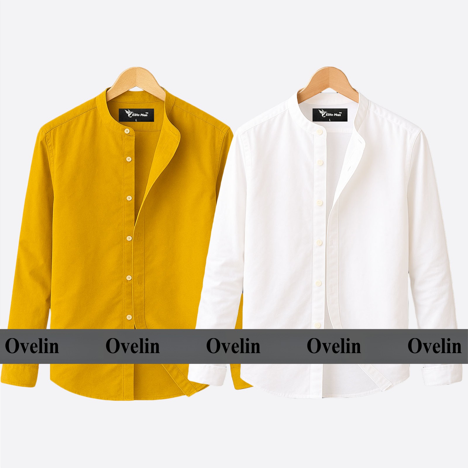 2 pcs Combo Ban Colar Full Sleeve Shirt - White & Kathali. - 1250