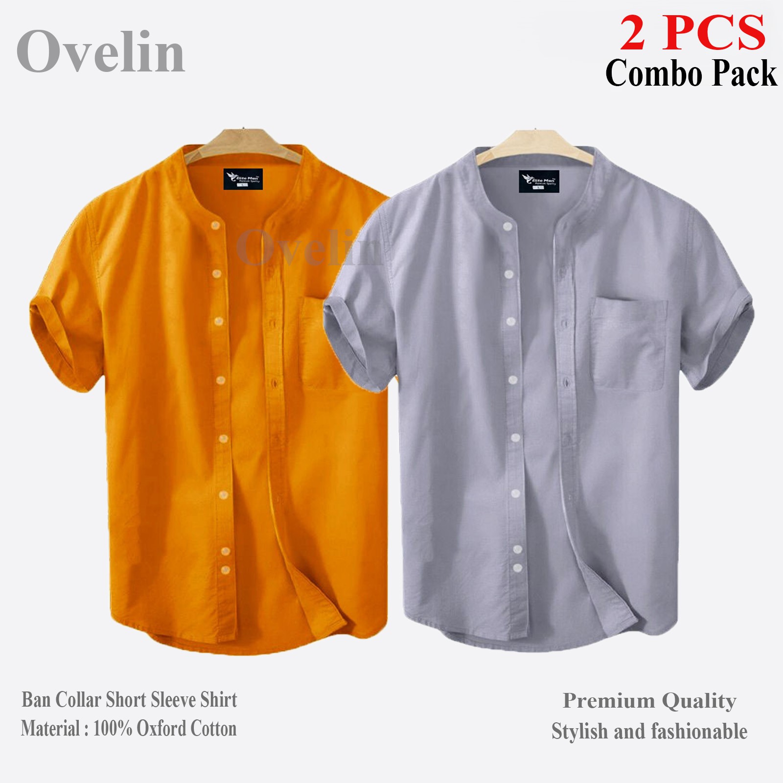 2 pcs Combo Ban Colar Short Sleeve Shirt - Ash & Kathali. - 1495