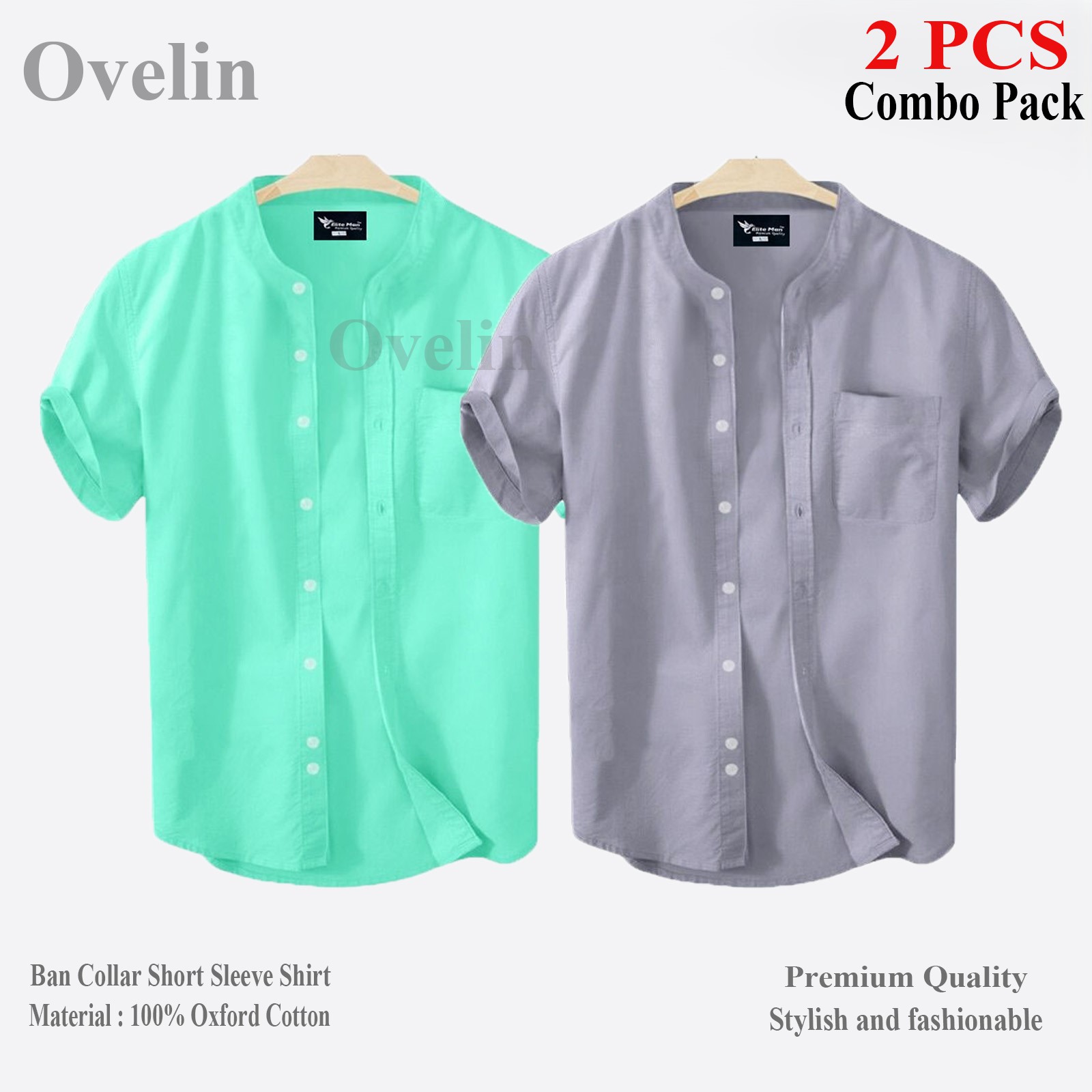 2 pcs Combo Ban Colar Short Sleeve Shirt - Ash & Pest. - 1494