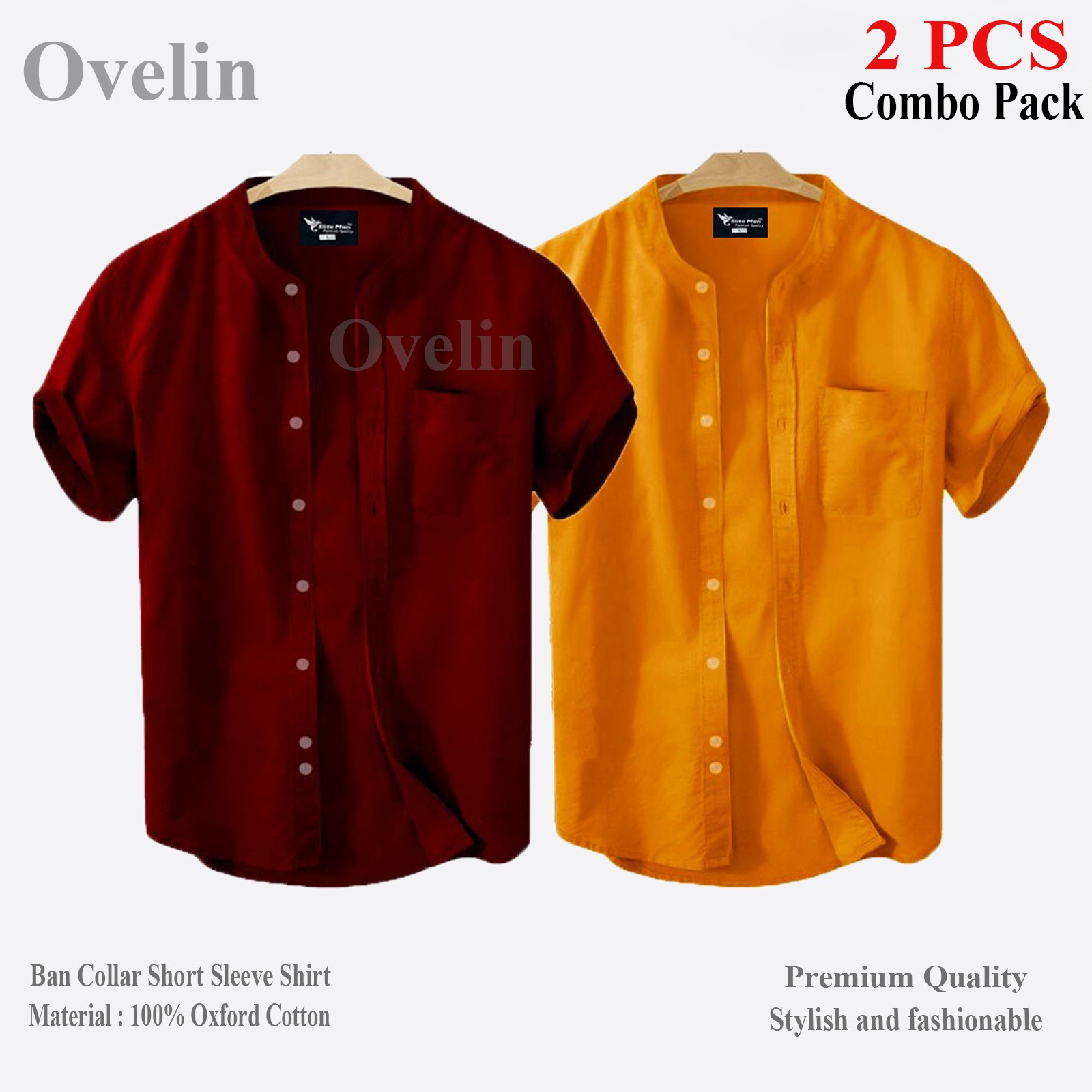 2 pcs Combo Ban Colar Short Sleeve Shirt - Kathali & Maroon. - 1487