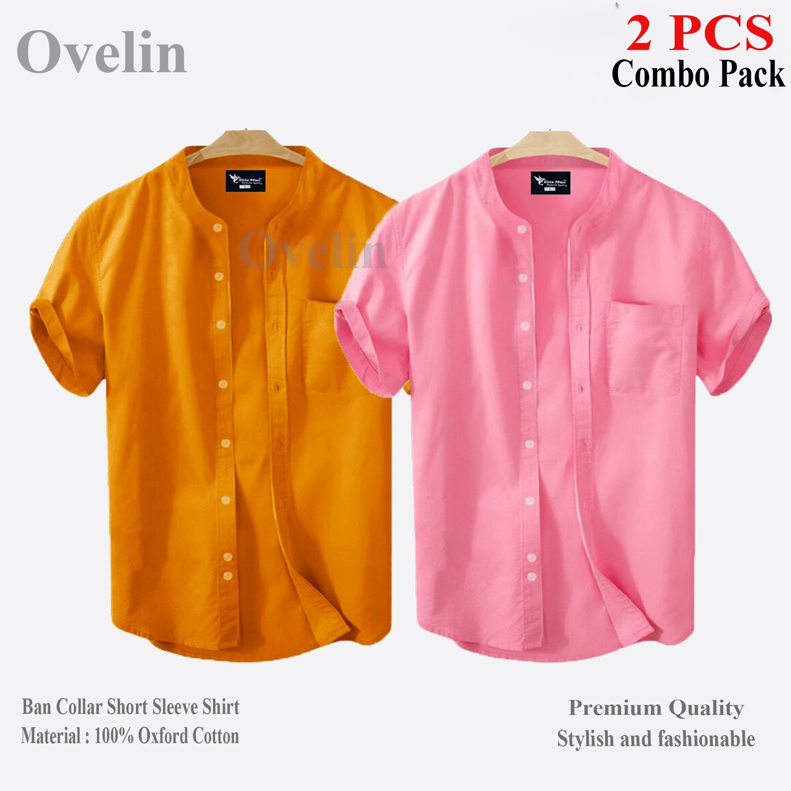 2 pcs Combo Ban Colar Short Sleeve Shirt - Pink & Kathali. - 1486