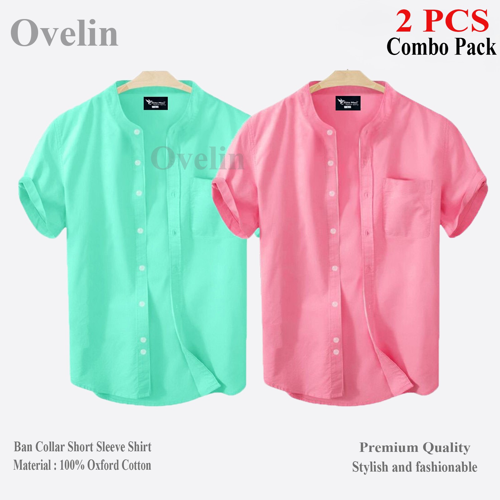 2 pcs Combo Ban Colar Short Sleeve Shirt - Pink & Pest. - 1477