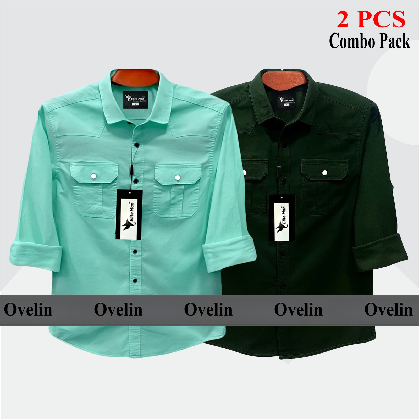 2 Pcs Combo Premium Quality Double Pocket Shirt - Pest & Green. - 1566