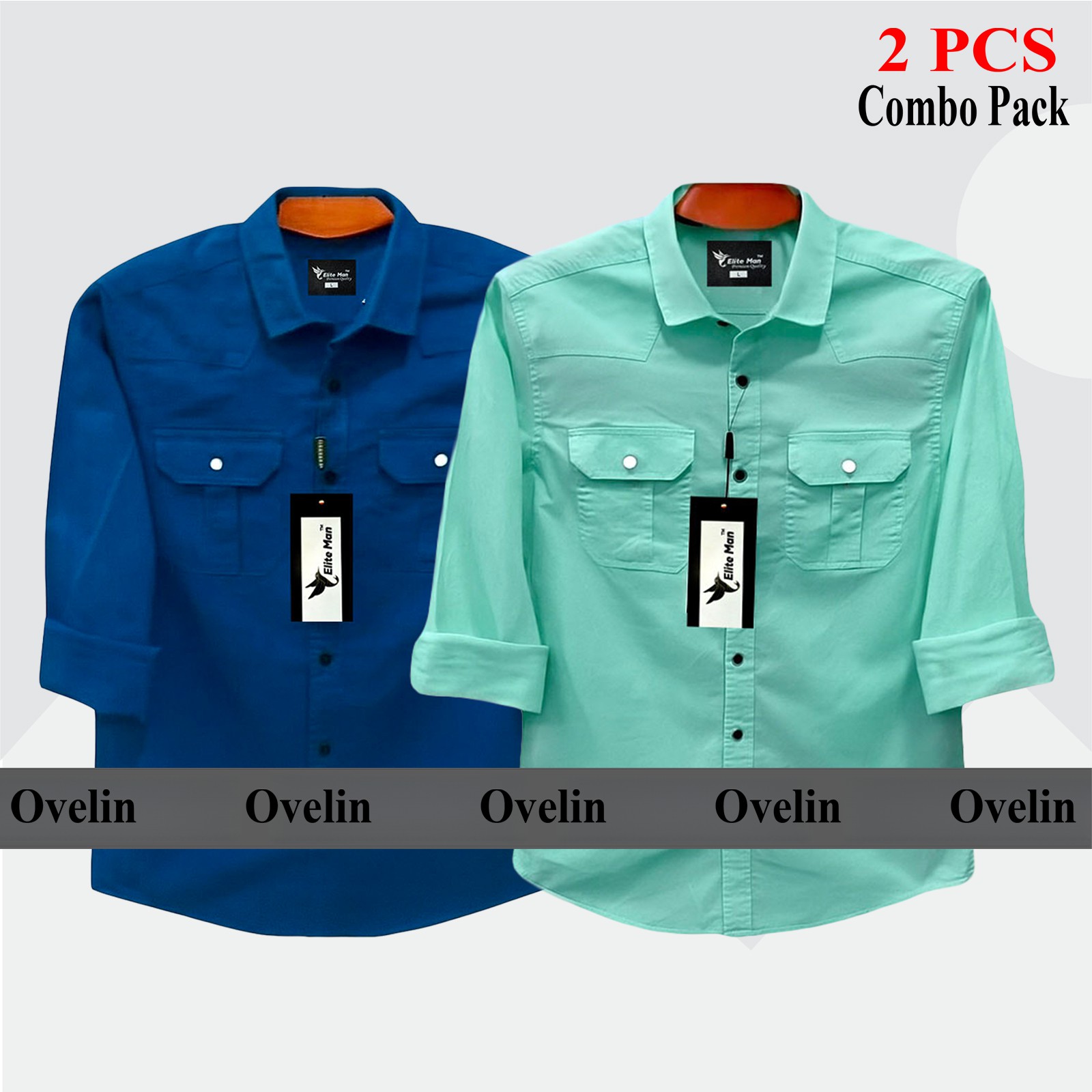 2 Pcs Combo Premium Quality Double Pocket Shirt - Pest & Royal Blue. - 1572