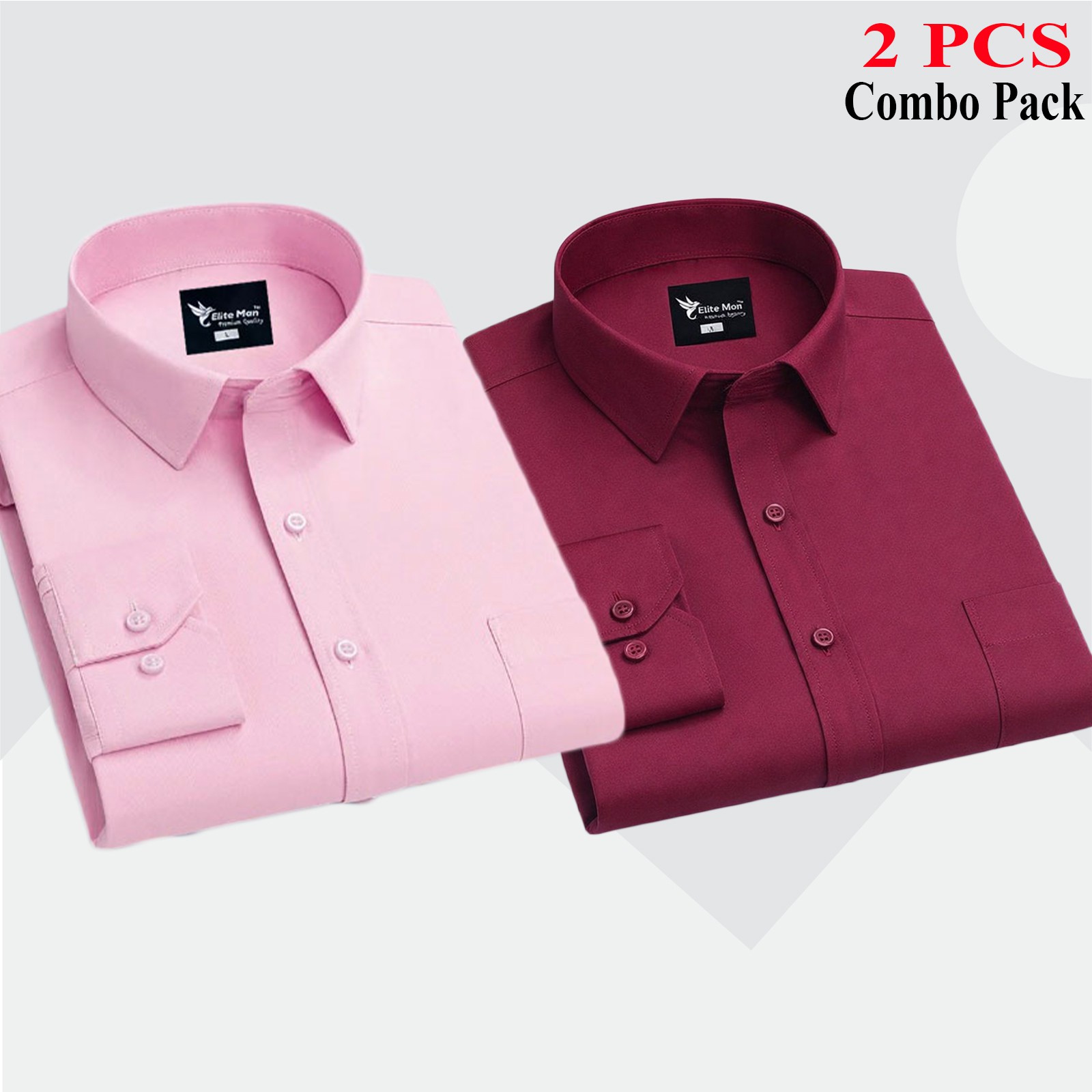 2 Pcs Combo Premium Quality Formal Shirt - Pink & Maroon. - 1108