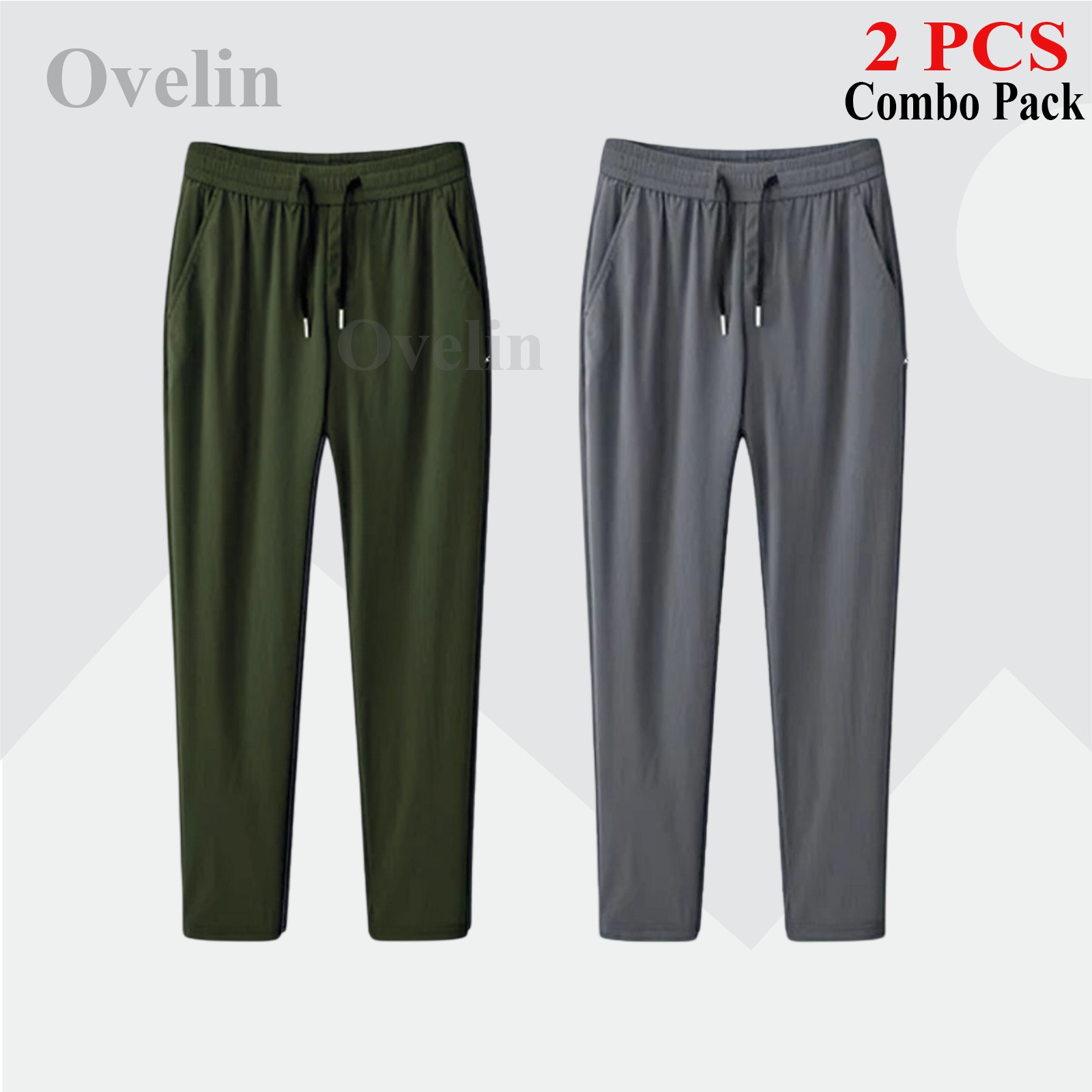 2 pcs Combo Premium Quality Solid Trouser - Ash & Olive. - 1456