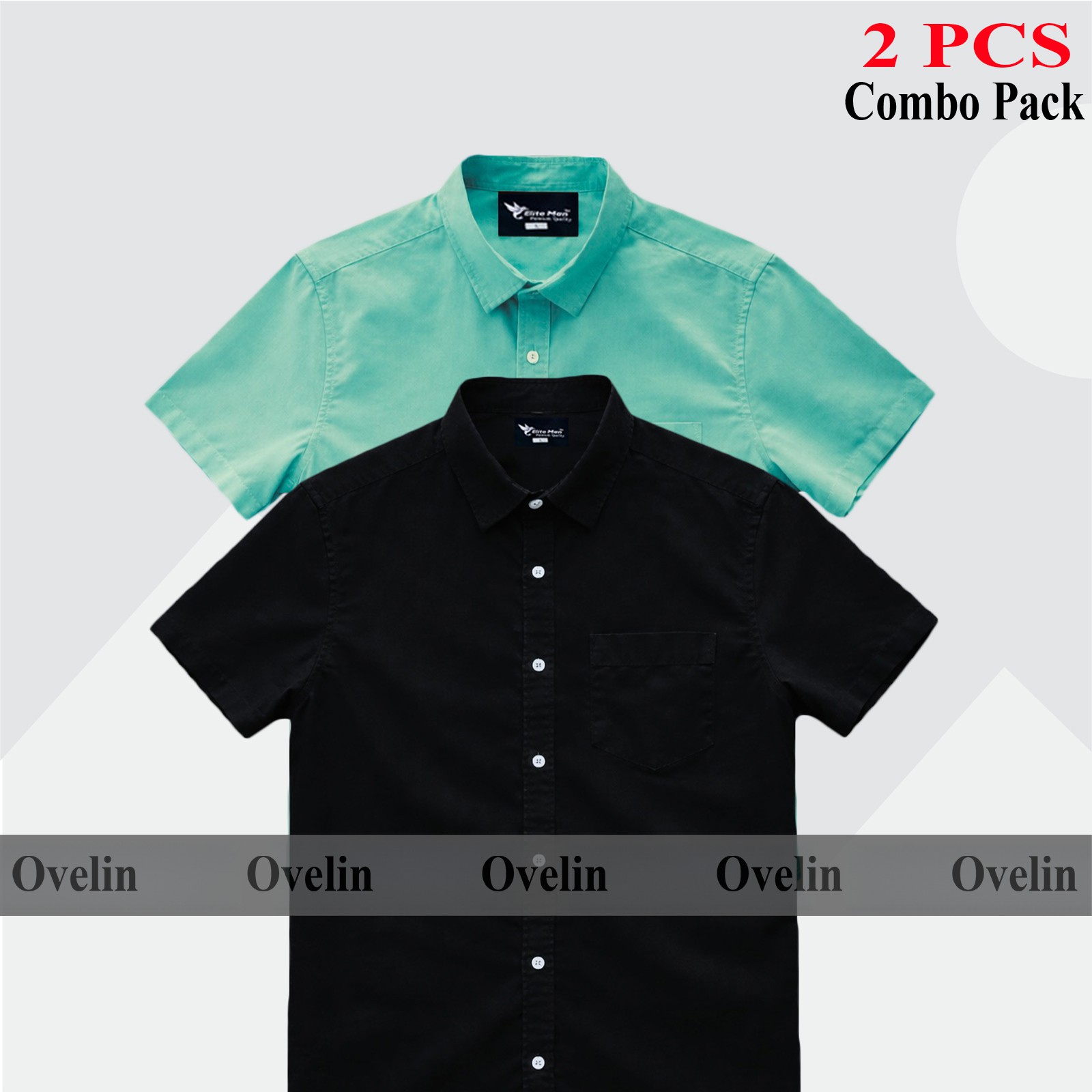 2 Pcs Combo Short Sleeve Shirt - Black & Pest. - 1360