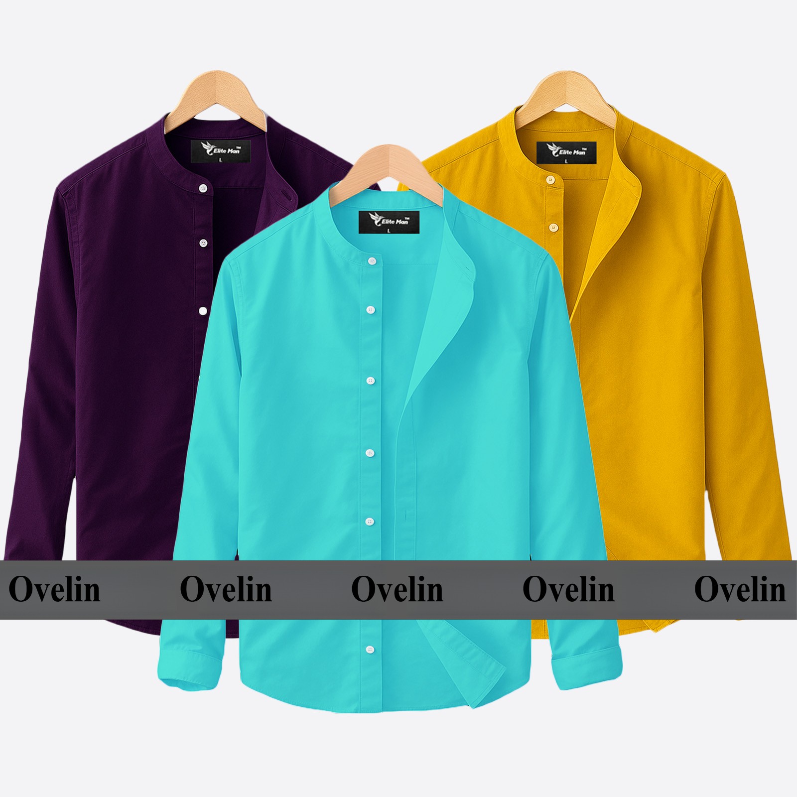 4 pcs Combo Ban Colar Full Sleeve Shirt - Black, White, Pest & Sky Blue.
