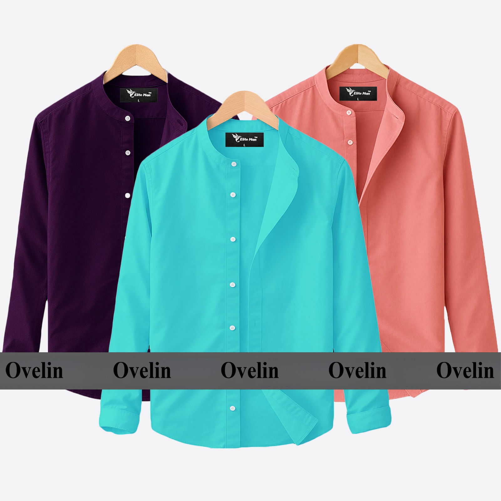 4 pcs Combo Ban Colar Full Sleeve Shirt - Pink, Pest, Sky Blue, Navy Blue.