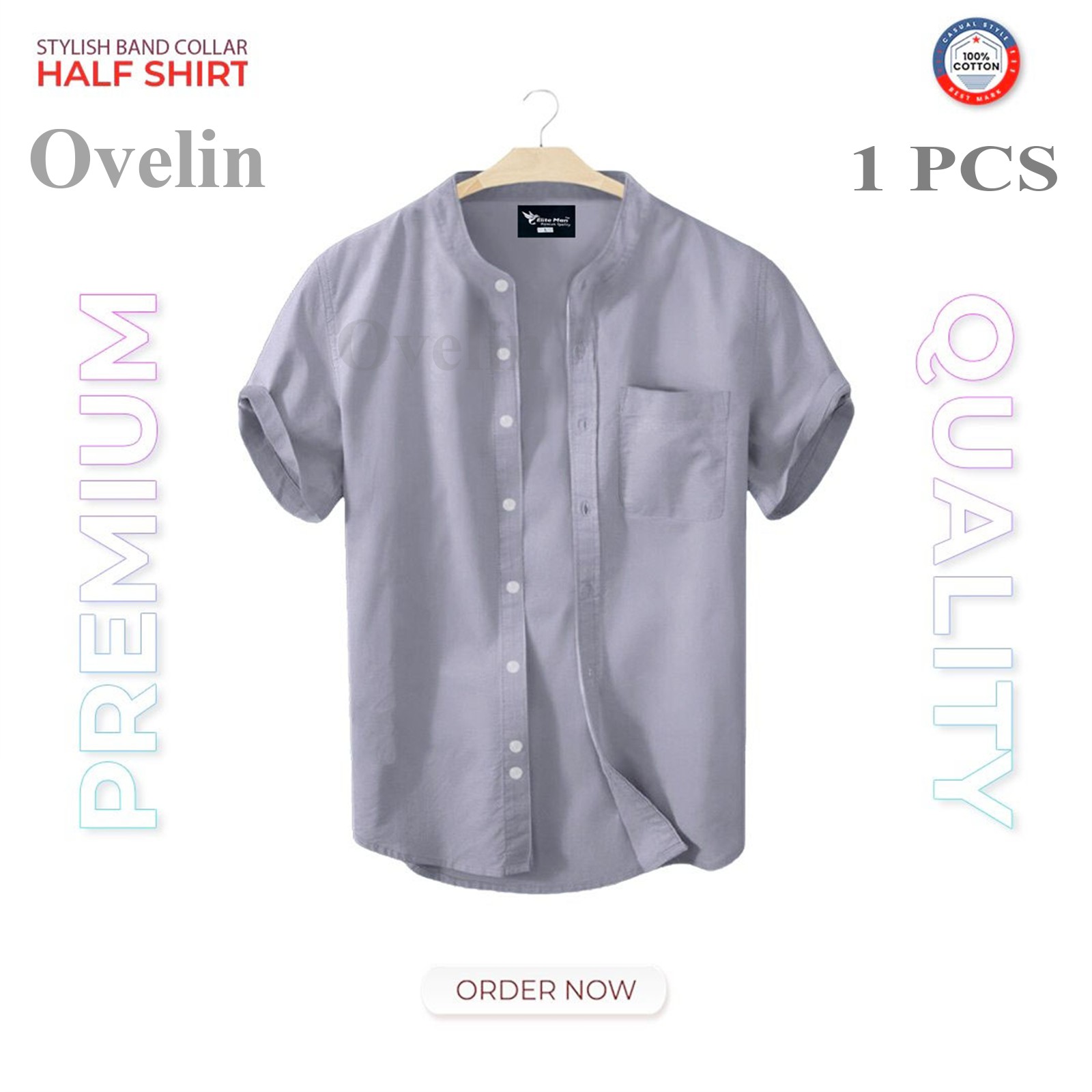 4 pcs Combo Ban Colar Short Sleeve Shirt - Black, White, Ash & Sky Blue.