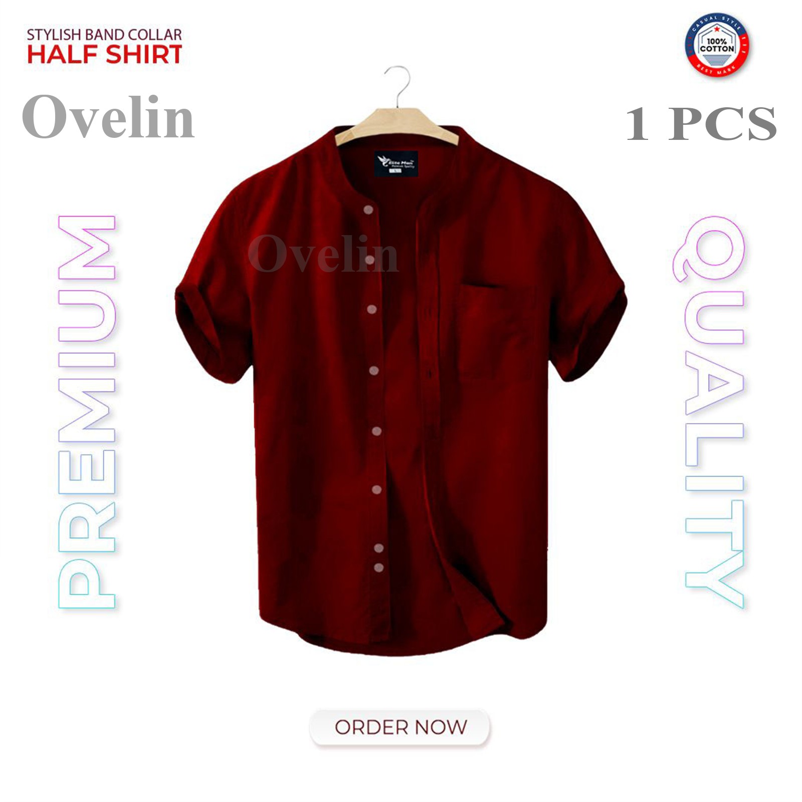 4 pcs Combo Ban Colar Short Sleeve Shirt - Black, White, Maroon & Sky Blue.