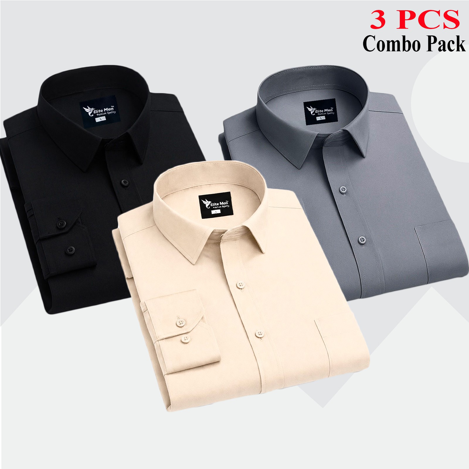 3 Pcs Combo Premium Quality Formal Shirt - Black, Ash & Biscuit. - 1123