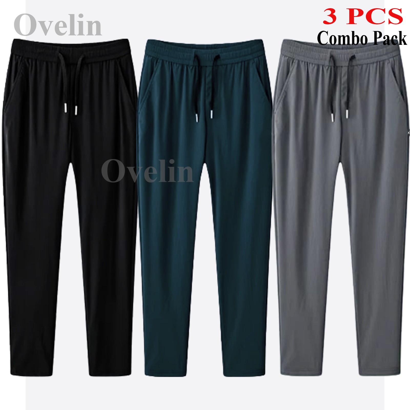 3 pcs Combo Premium Quality Solid Trouser - Black, Ash & White.
