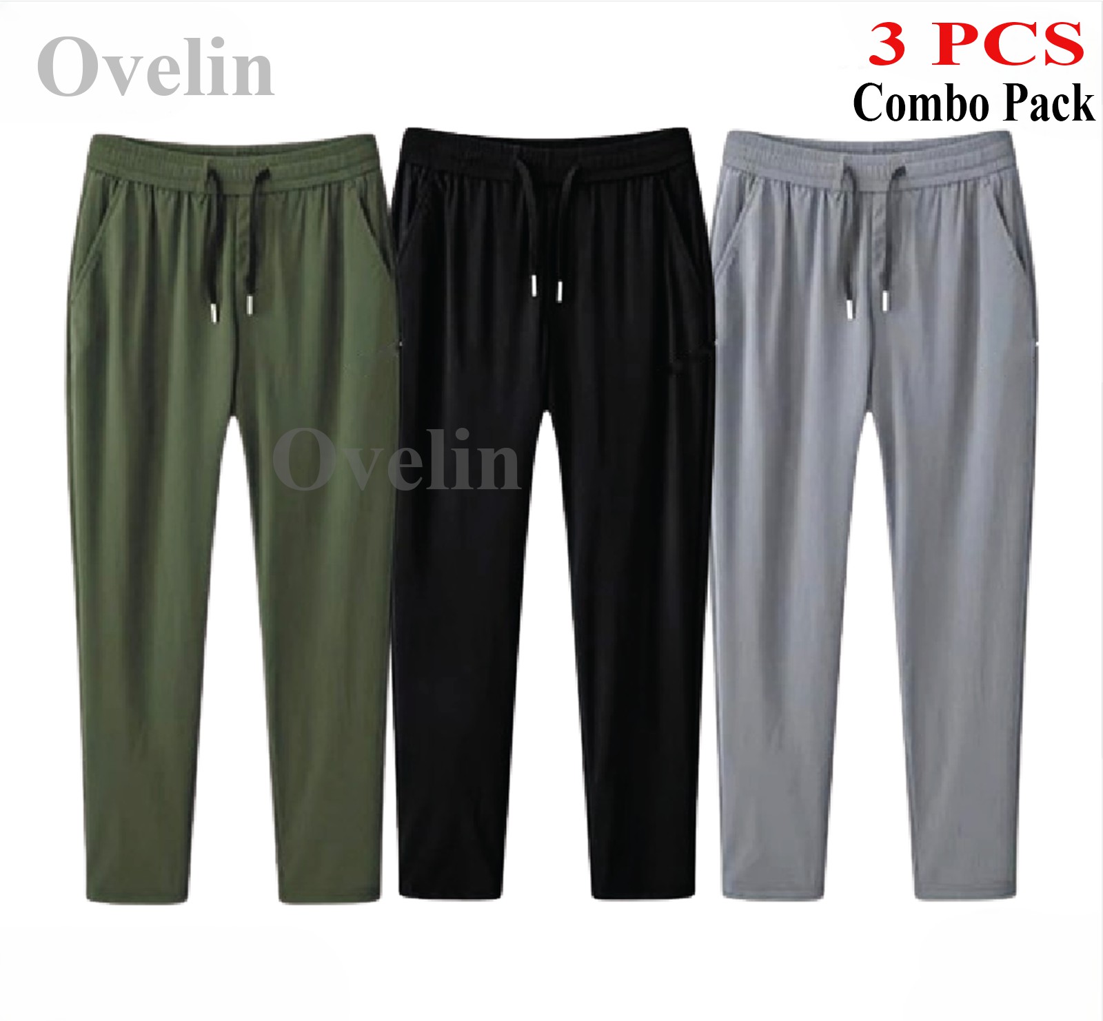 3 pcs Combo Premium Quality Solid Trouser - Black, Ash & Olive. - 1449