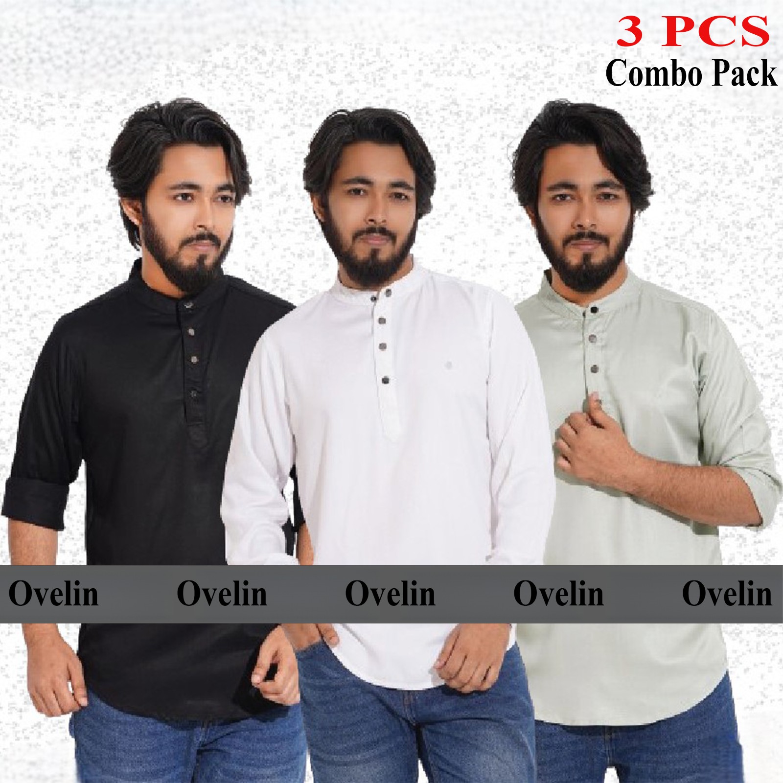 3 pcs Combo Satin Fabrics Katua - White, Coffee & Navy Blue.
