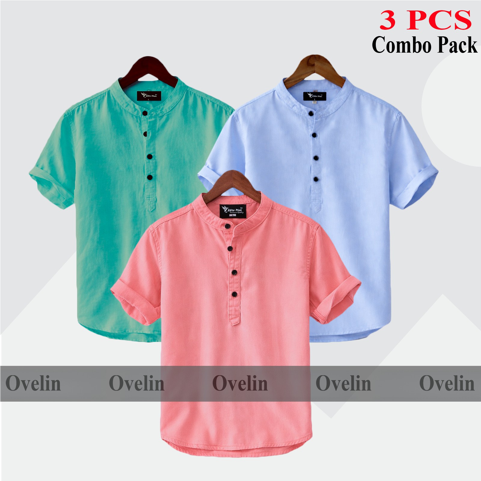 3 pcs Combo Short Sleeve Katua For Men's - Pink, Pest & Sky Blue. - 1314