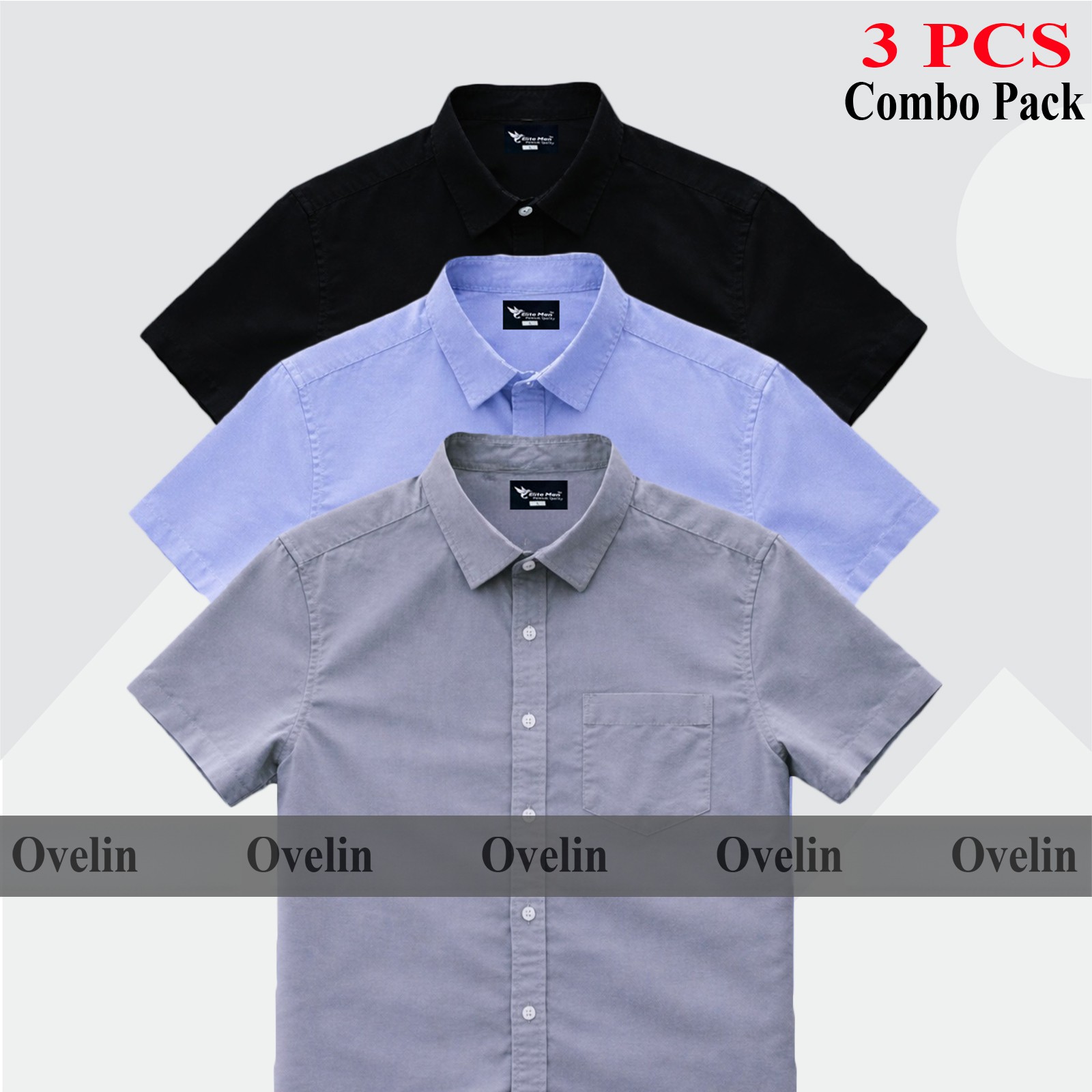 3 Pcs Combo Short Sleeve Shirt - Black, Ash & Sky Blue. - 1365