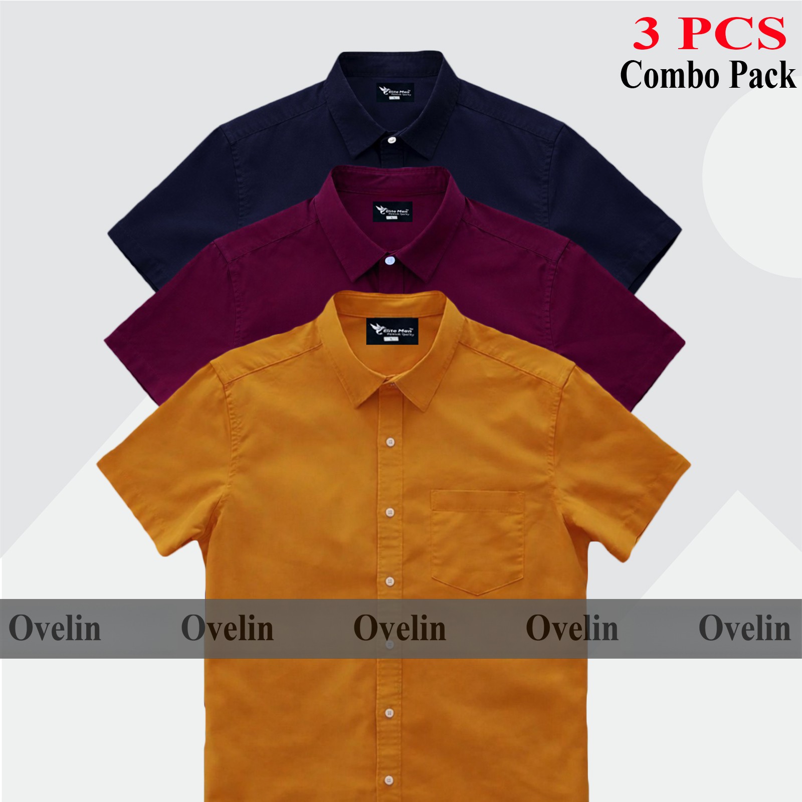 3 Pcs Combo Short Sleeve Shirt - Kathali, Maroon & Navy Blue. - 1631