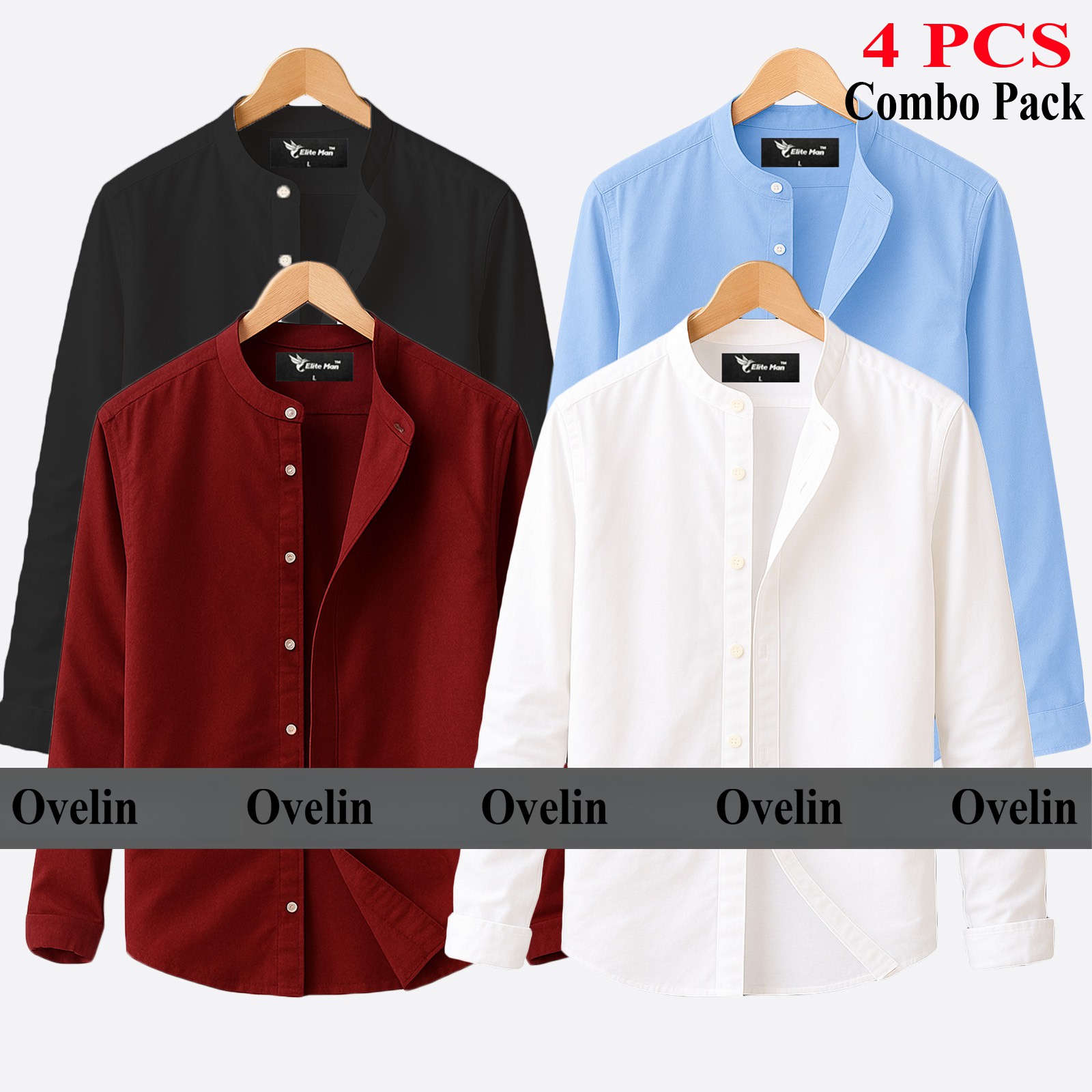 4 pcs Combo Ban Colar Full Sleeve Shirt - Black, White, Pest & Sky Blue.