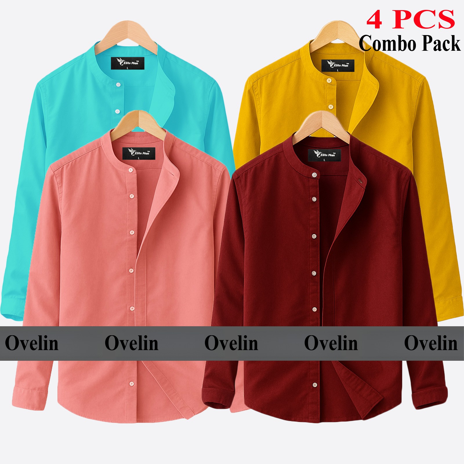 4 pcs Combo Ban Colar Full Sleeve Shirt - Pink, Pest, Sky Blue, Navy Blue.