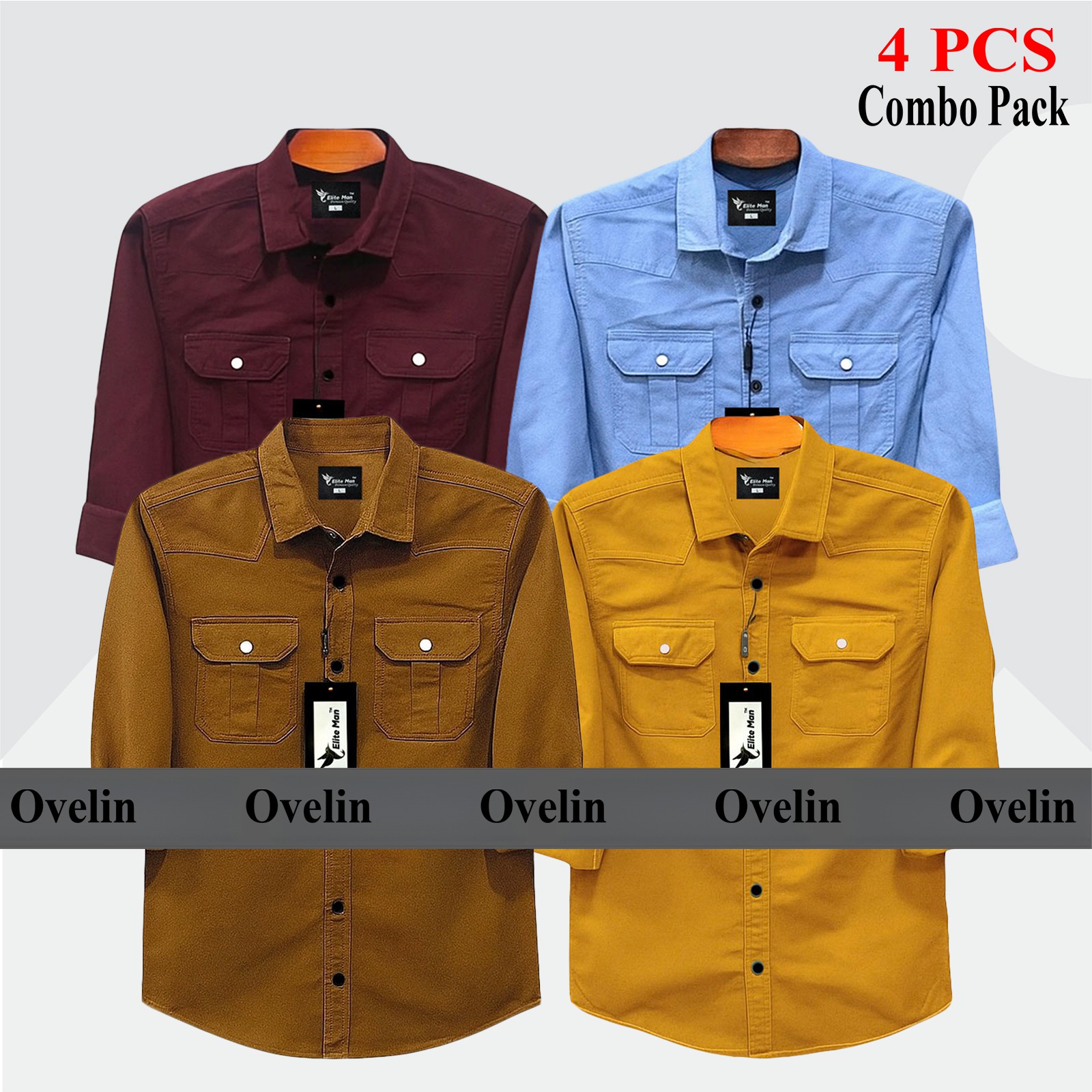 4 Pcs Combo Premium Quality Double Pocket Shirt - Black, Pink, Pest & Sky Blue.