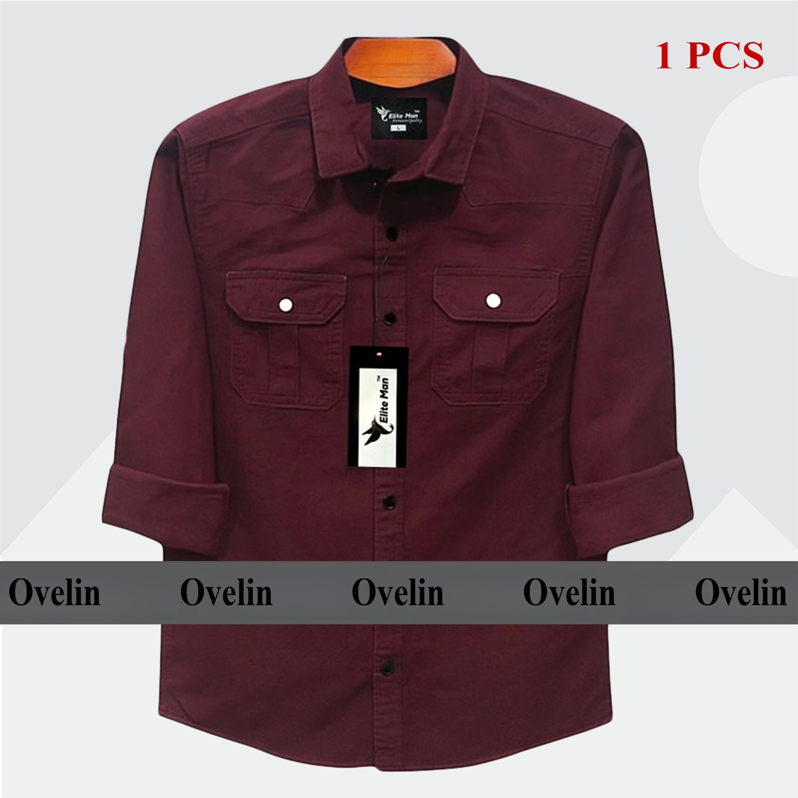 4 Pcs Combo Premium Quality Double Pocket Shirt - Black, Pest, Maroon & Banson.