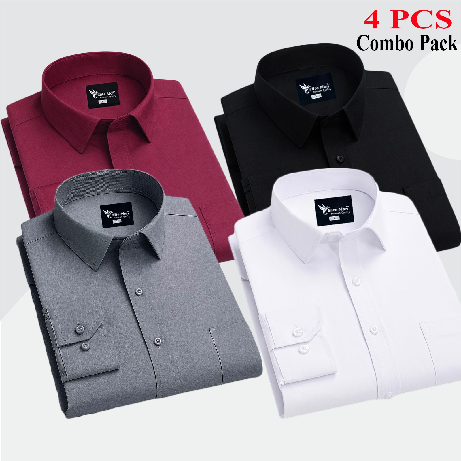 4 Pcs Combo Premium Quality Formal Shirt - Black, White, Ash & Maroon. - 1139