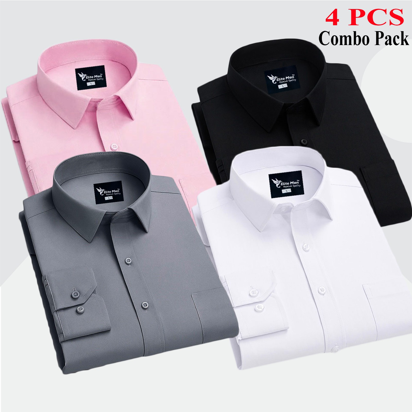 4 Pcs Combo Premium Quality Formal Shirt - Black, White, Pink & Sky Blue.