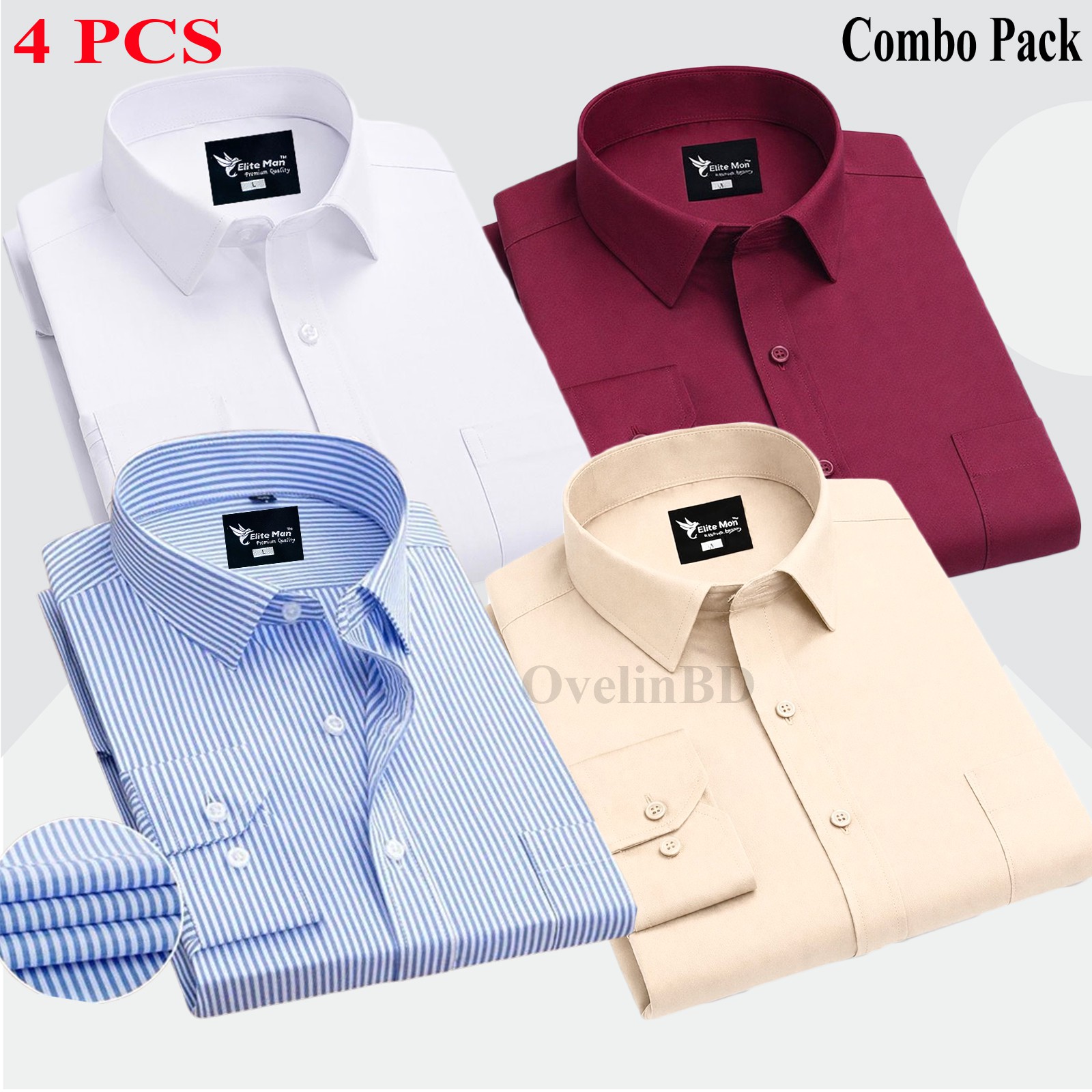 4 Pcs Combo Premium Quality Formal Shirt - White, Maroon, Biscuit & Sky Blue.