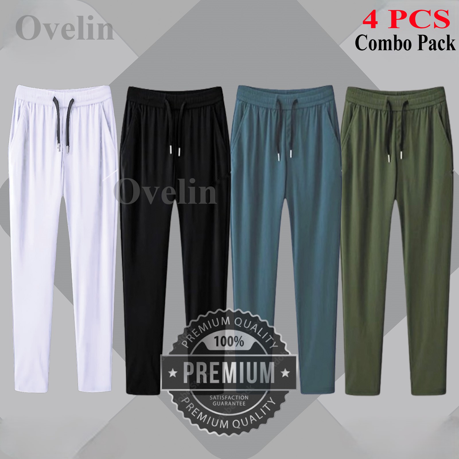 4 pcs Combo Premium Quality Solid Trouser - Black, Ash, Olive & White.