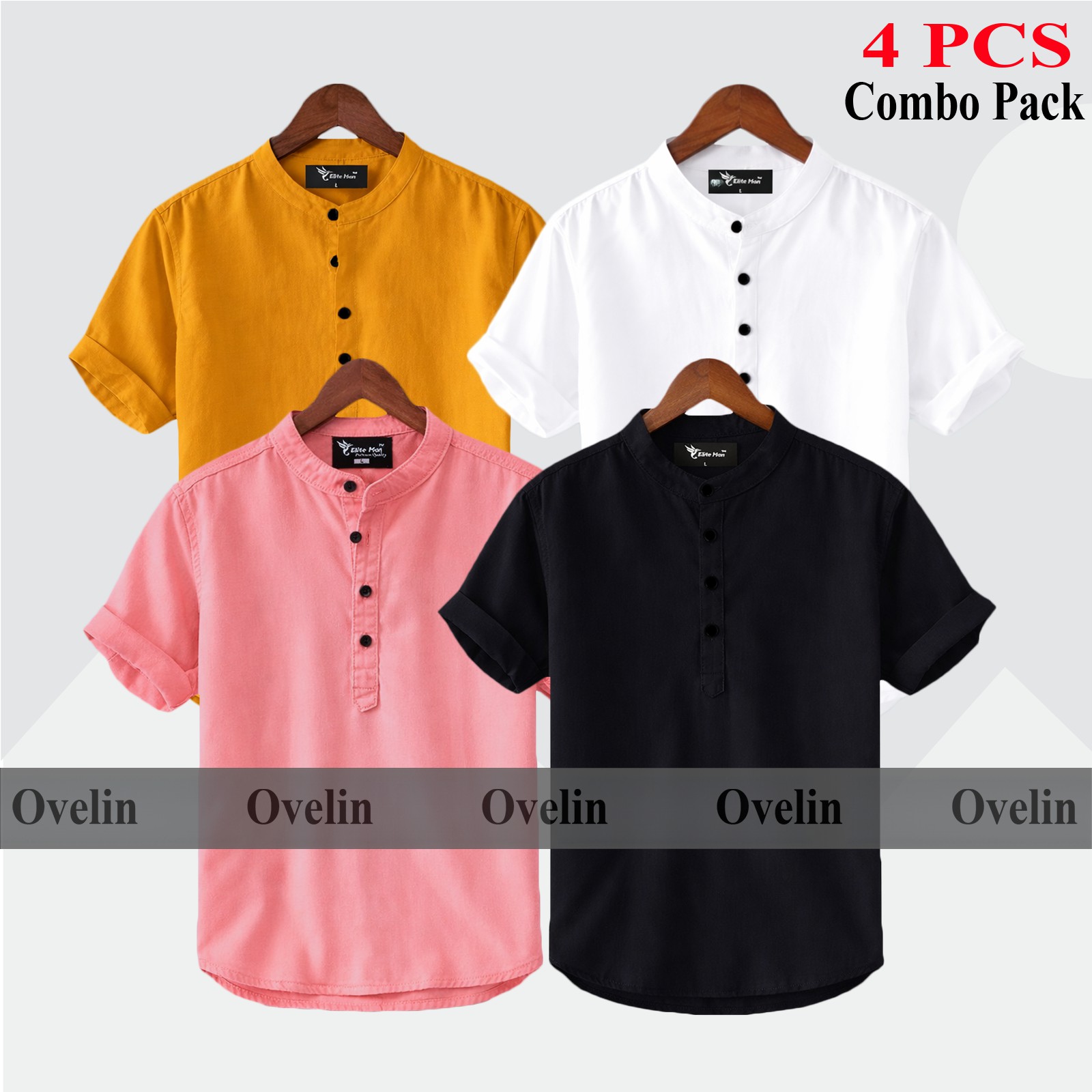 4 pcs Combo Short Sleeve Katua For Men's - White, Pink, Kathali & Navy Blue.
