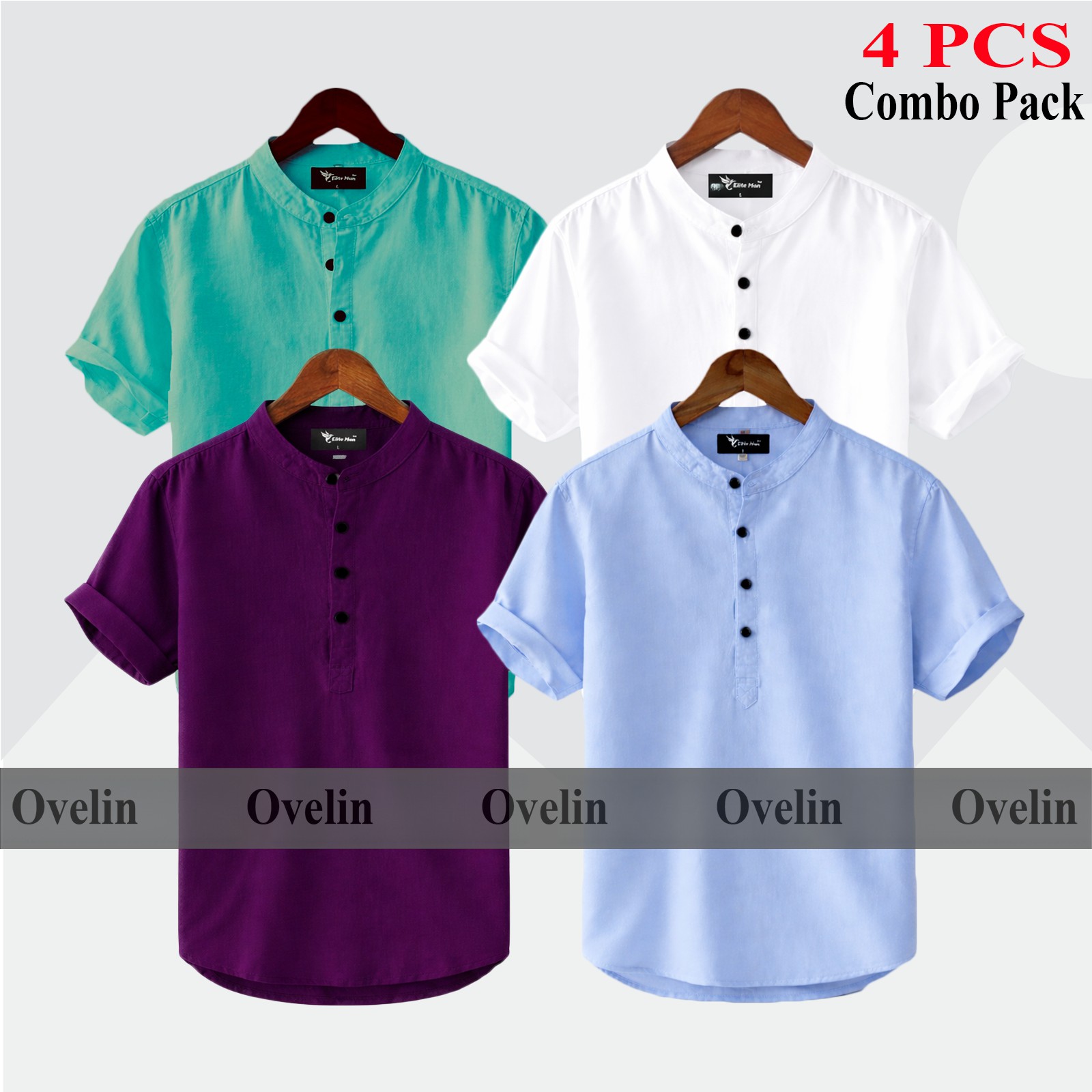 4 pcs Combo Short Sleeve Katua For Men's - White, Pest, Purple & Sky Blue. - 1326