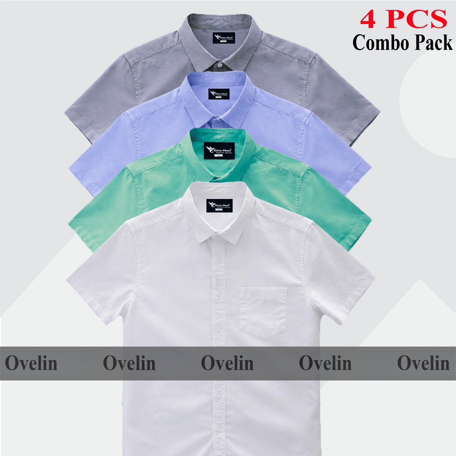 4 Pcs Combo Short Sleeve Shirt - White, Ash, Pest & Sky Blue. - 1387